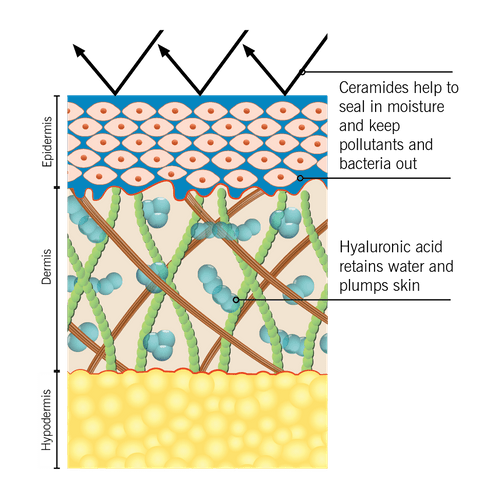 Skin Moisture Lock™ is een unieke anti-ageingformule met een combinatie van hyaluronzuur en ceramiden. Hyaluronzuur en ceramiden werken van binnenuit om het aanzien van fijne lijntjes en rimpels te verminderen en de huid voller te maken. Het resultaat is een jeugdigere huid die zacht en soepel aanvoelt.