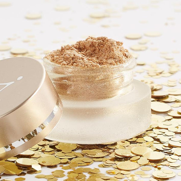Voor een glinsterende, luchtige look, breng je ons goudpoeder aan op je wangen, ogen, lippen en zelfs je decolleté.